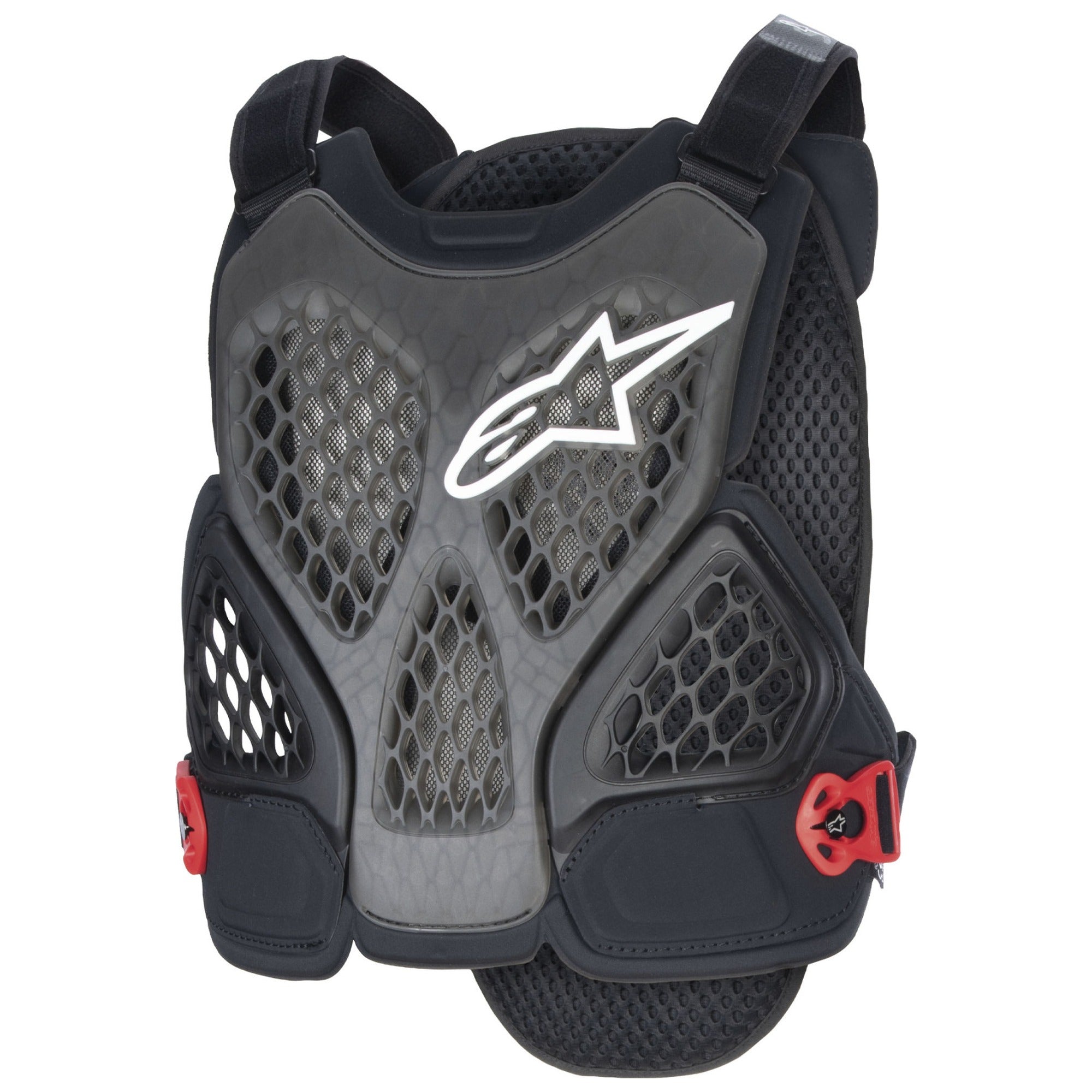 Flexibelt bröstskydd i högpresterande polymer som rör sig med kroppen. Ledade frontpaneler och självständigt rörliga sidovingar följer dina naturliga rörelser utan att begränsa.
